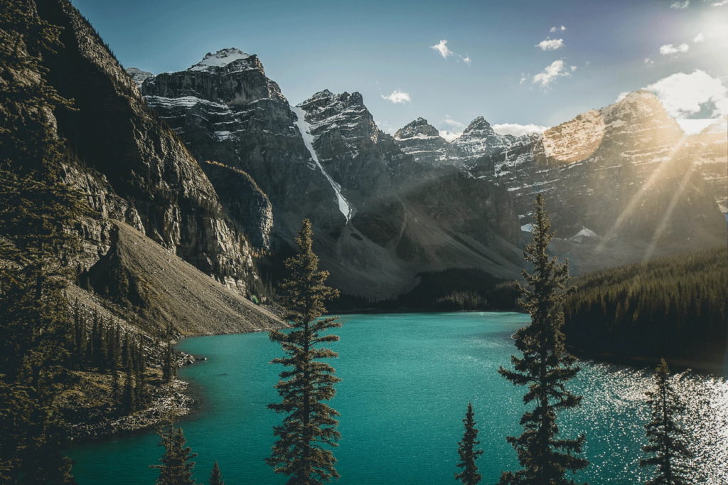 Banff National Park is Canada’s oldest national park, established in 1885. Located in Alberta’s Rocky Mountains, 110–180 kilometres (68–112 mi) west of Calgary, Banff encompasses 6,641 square kilometres (2,564 sq mi) of mountainous terrain, with many glaciers and ice fields, dense coniferous forest, and alpine landscapes. The Icefields Parkway extends from Lake Louise, connecting to Jasper National Park in the north. Provincial forests and Yoho National Park are neighbours to the west, while Kootenay National Park is located to the south and Kananaskis Country to the southeast. The main commercial centre of the park is the town of Banff, in the Bow River valley.