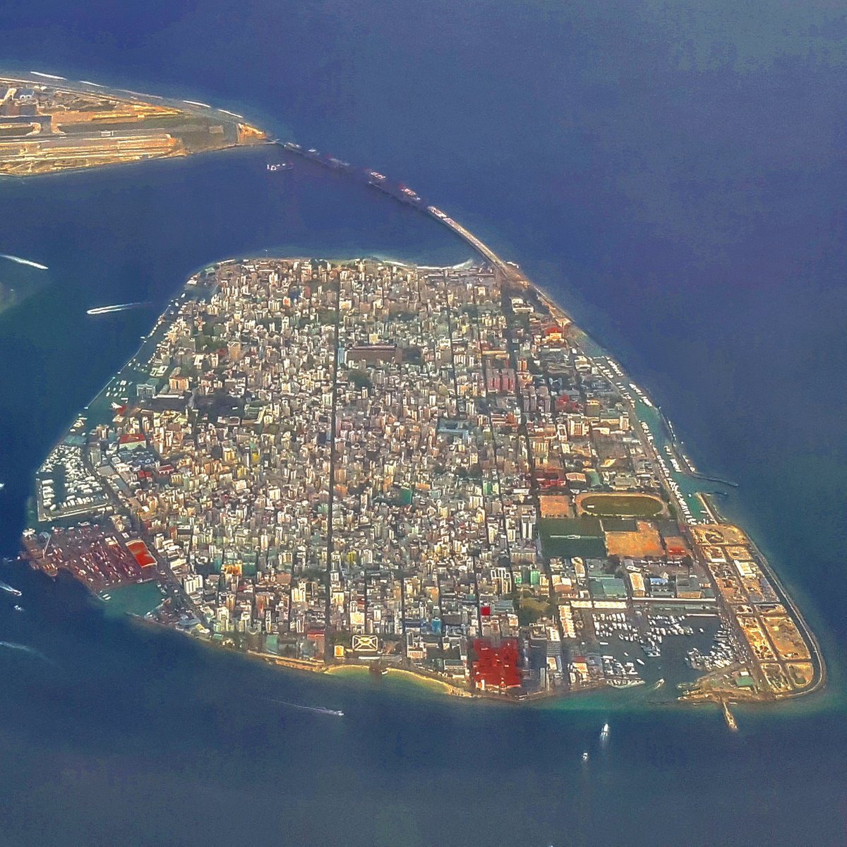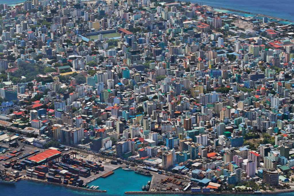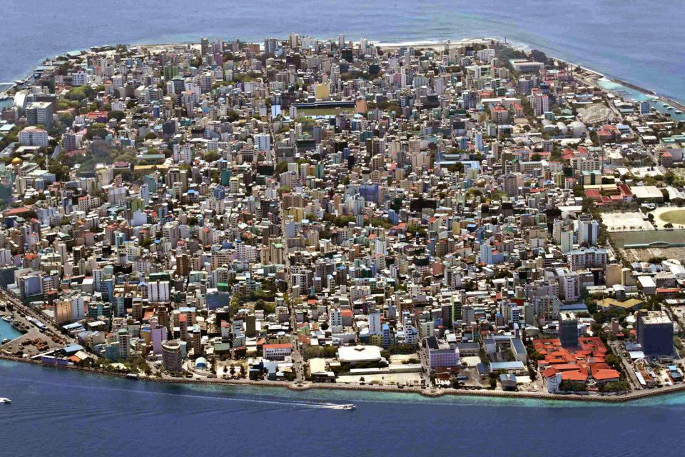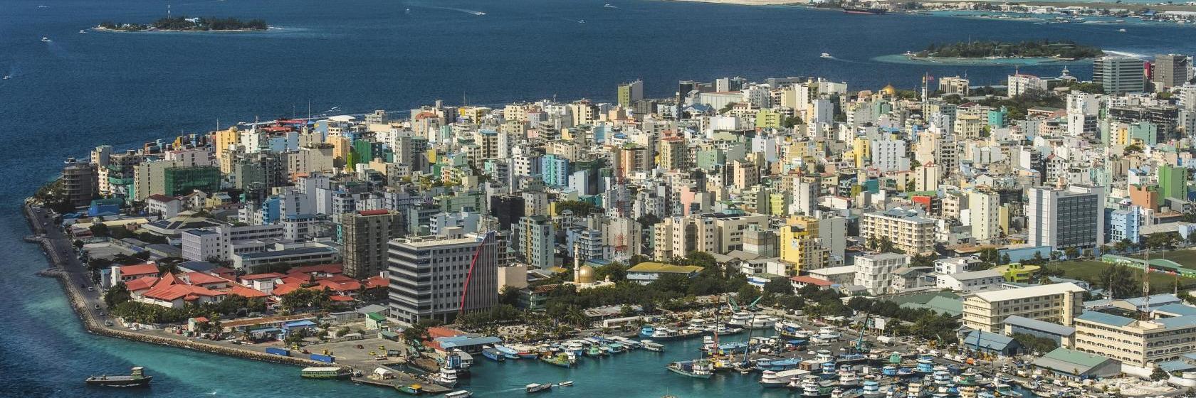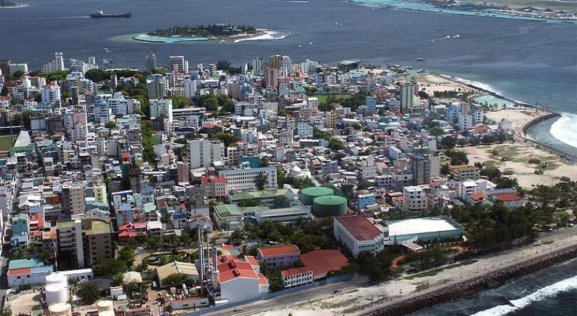 Malé (/ˈmɑːleɪ/, locally [ˈmɑːlɛ]; Dhivehi: މާލެ) is the capital and most populous city in the Republic of Maldives. With a population of 227,486[2] and an area of 8.30 square kilometres (3.20 sq mi), it is also one of the most densely populated cities in the world. The city is geographically located at the southern edge of North Malé Atoll (Kaafu Atoll). Administratively, the city consists of a central island, an airport island, and four other islands governed by the Malé City Council.